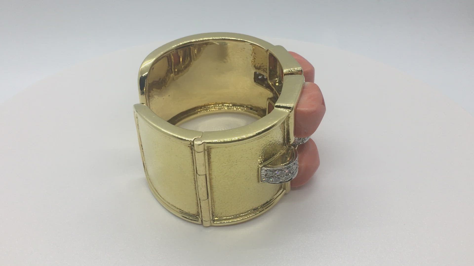David Webb Bastille Diamond Gold Platinum Coral Cuff Bracelet