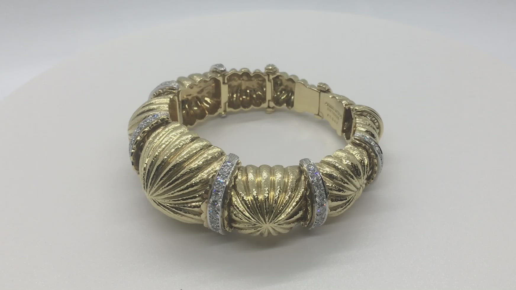 David Webb Fluted Dome Diamond Gold Platinum Bracelet