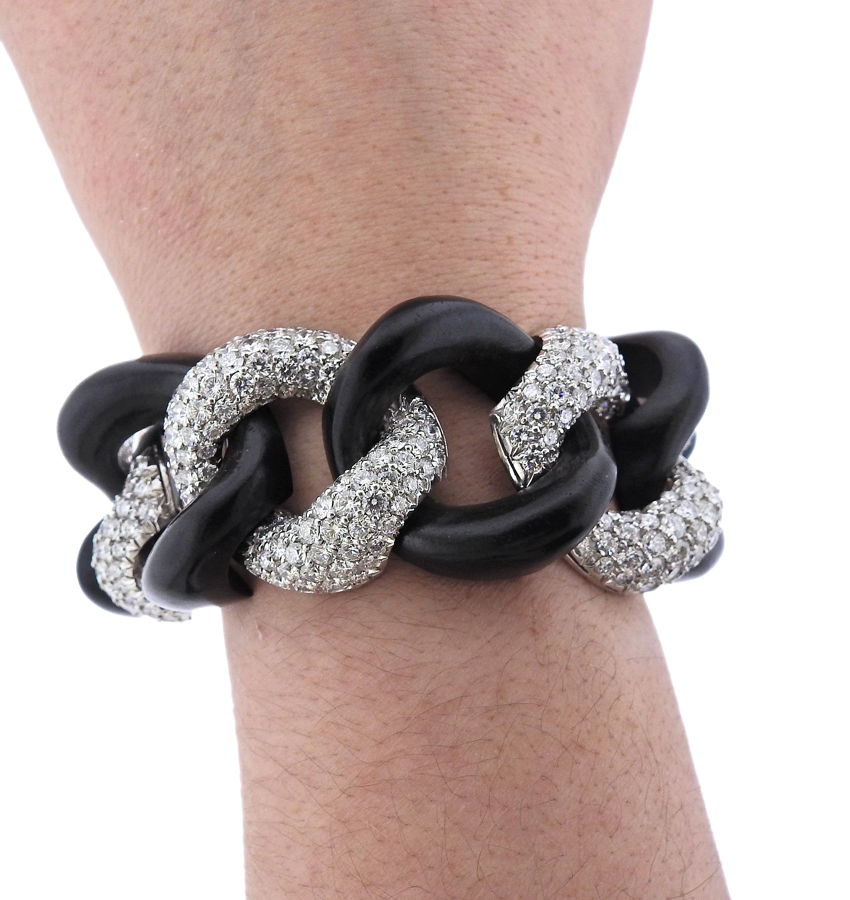 Exquisite Link bracelet by Seaman Schepps ,in 18k white gold and ebony wood, with approx. 32cts in G/VS diamonds. Retail $143650. Comes with box.