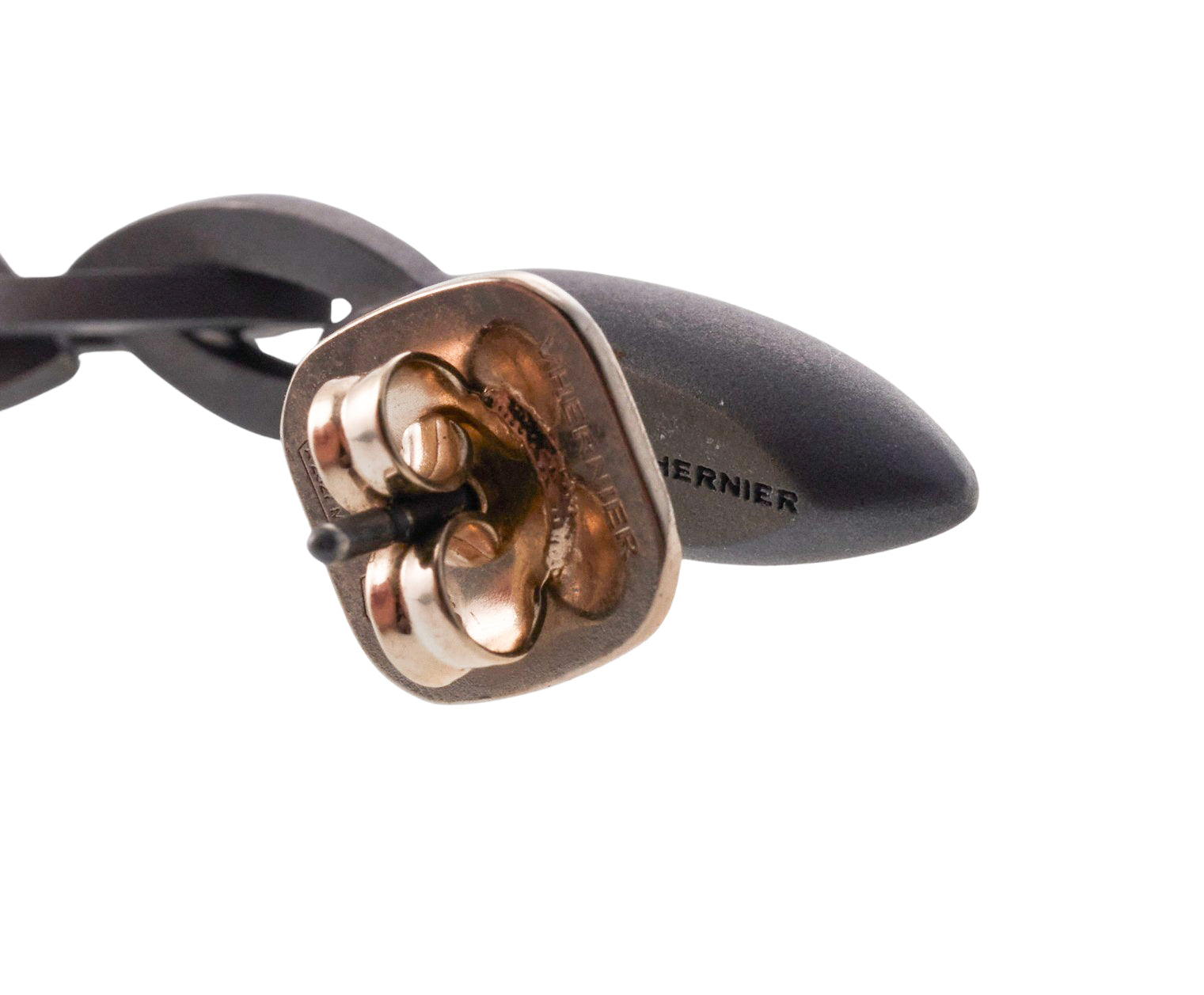 - MARKED/TESTED: Vhernier, Titanium, 269624. 18k gold backs.
